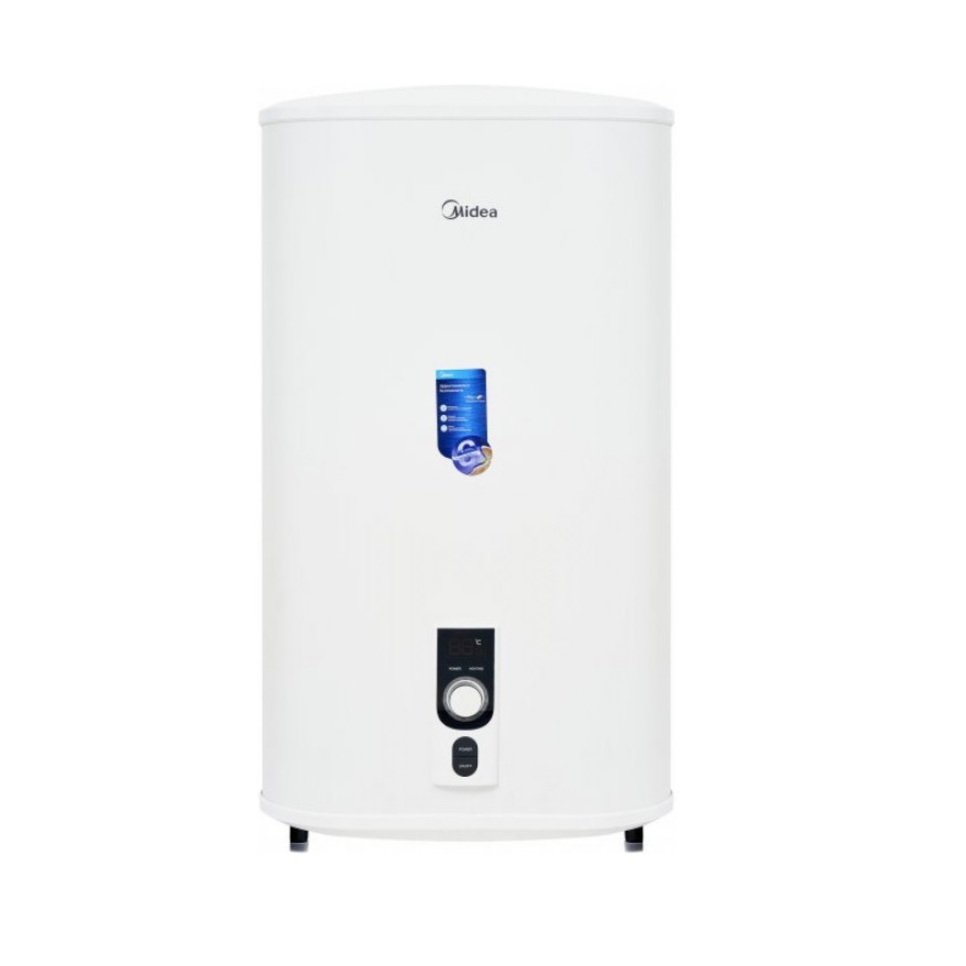Водонагреватель (бойлер) Midea D80-20ED2(D) выпускается в плоском прямоугольном корпусе белого цвета, изготовленного из стали. Такая форма, а также возможность настенного монтажа в вертикальном и горизонтальном положении позволяют размещать модель в наиболее удобном месте. Особенно актуально это для малогабаритных помещений, где важен каждый квадратный сантиметр площади. Подводка труб при любом варианте производится снизу. Прибор оборудован 80-литровым баком, покрытым изнутри эмалью с сапфиром, и двумя сухими независимыми ТЭНами мощностью 1,2 и 0,8 кВт. Они способны нагревать воду до максимальной температуры 75°C. Кроме того, установленный магниевый анод предотвращает коррозию бака и продлевает срок его службы. Управляется водонагреватель (бойлер) Midea D80-20ED2(D) механическим регулятором со световым индикатором и цифровым дисплеем.