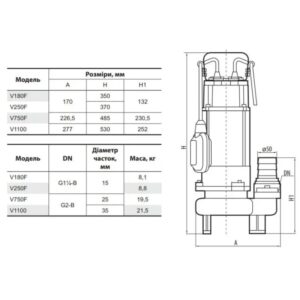 Характеристики Дренажный насос Sprut QDX 1,5-32-0,75